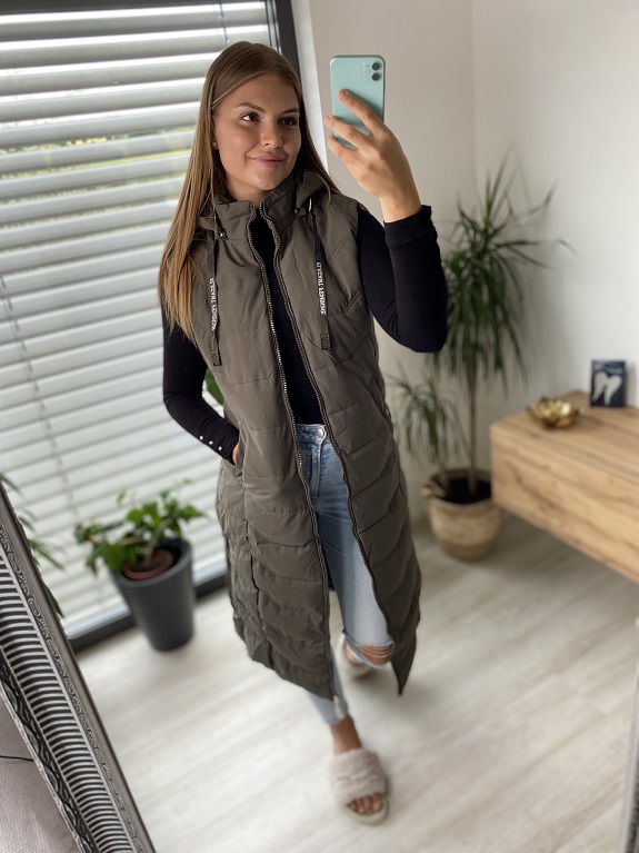 Dámská dlouhá vesta Glamour khaki SSkladem550 Kč/ ks