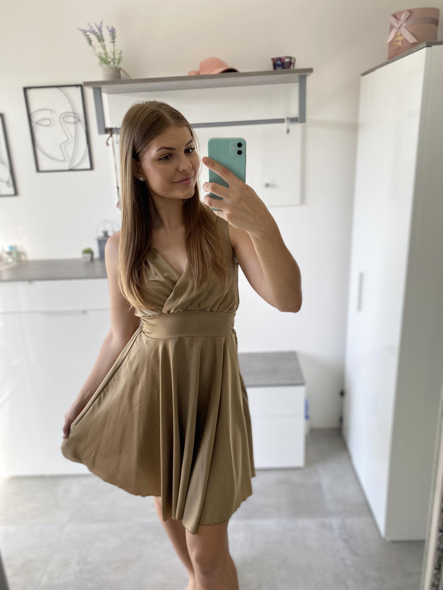 Saténové šaty UNI vel. kávové