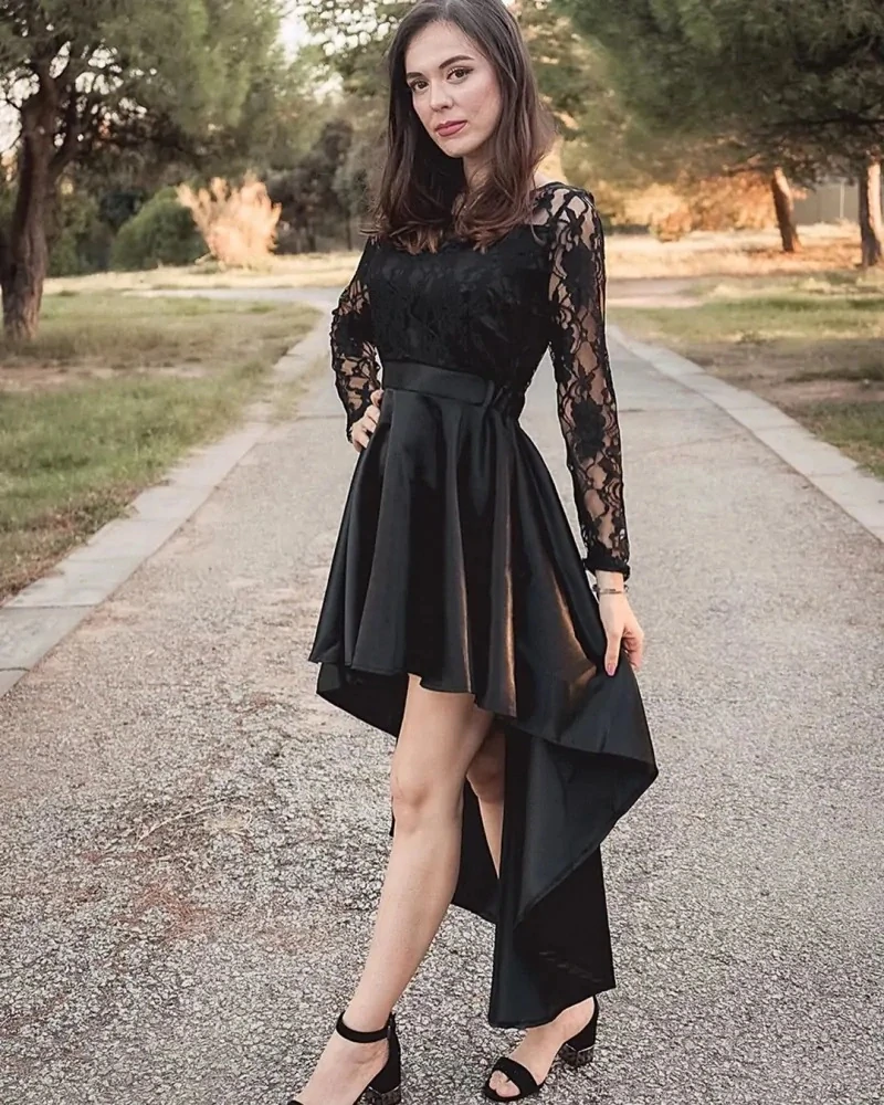 Elegantní společenské delší šaty s originální asymetrickou sukní a krajkovinou na horním díle.